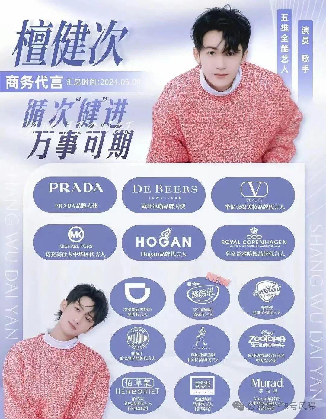 之后他的发展势头向好,尤其去年《长相思》中相柳一角出圈后,使檀健次人气迅速飙升,流量跟着大涨,商务资源开挂起飞,一口气解锁多个新代言,还手握奢代,销售量基本也撑住了。