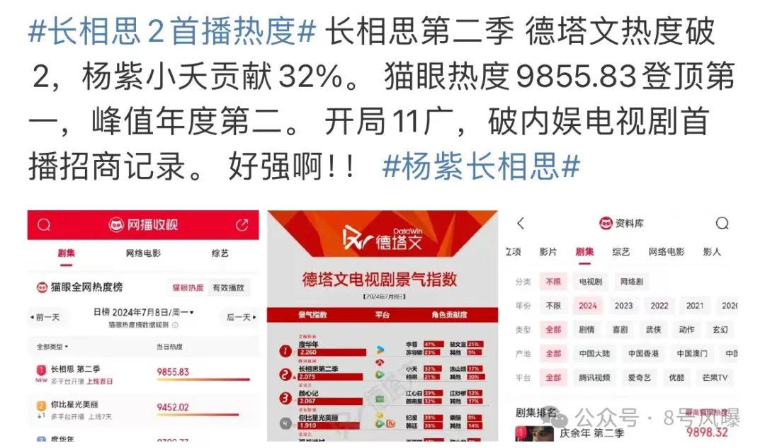 这部剧首播热度值已破28000,开局11广,更是直接打破了内娱电视剧首播招商纪录,观众不禁感叹:时隔一年《长相思》又杀回来了!