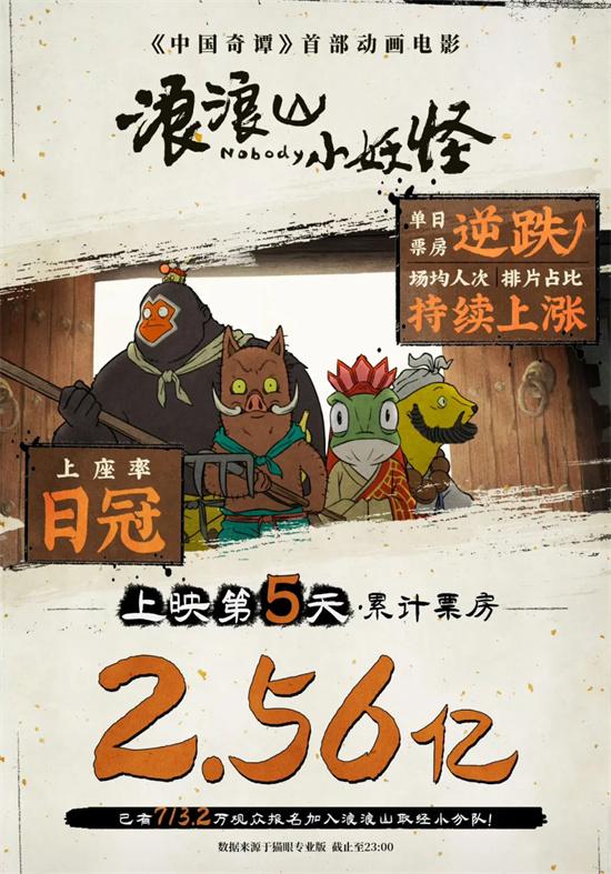继此前《中国奇谭》播出爆火之后,衍生电影《浪浪山小妖怪》又再度出圈,上映6天,票房多次逆跌,即将突破3亿,大数据预测总票房也冲向12亿。