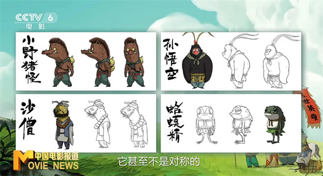 於水:首先造型方面是需要找一个动物,看起来比较底层的一个动物,不太聪明的样子。早期的造型还是不一样,颜色上也有变化,鼻子更长。眼睛更偏向两边,到后来又变了,要扮唐僧,好歹眼睛要往中间靠,两边有点太不像人类了。