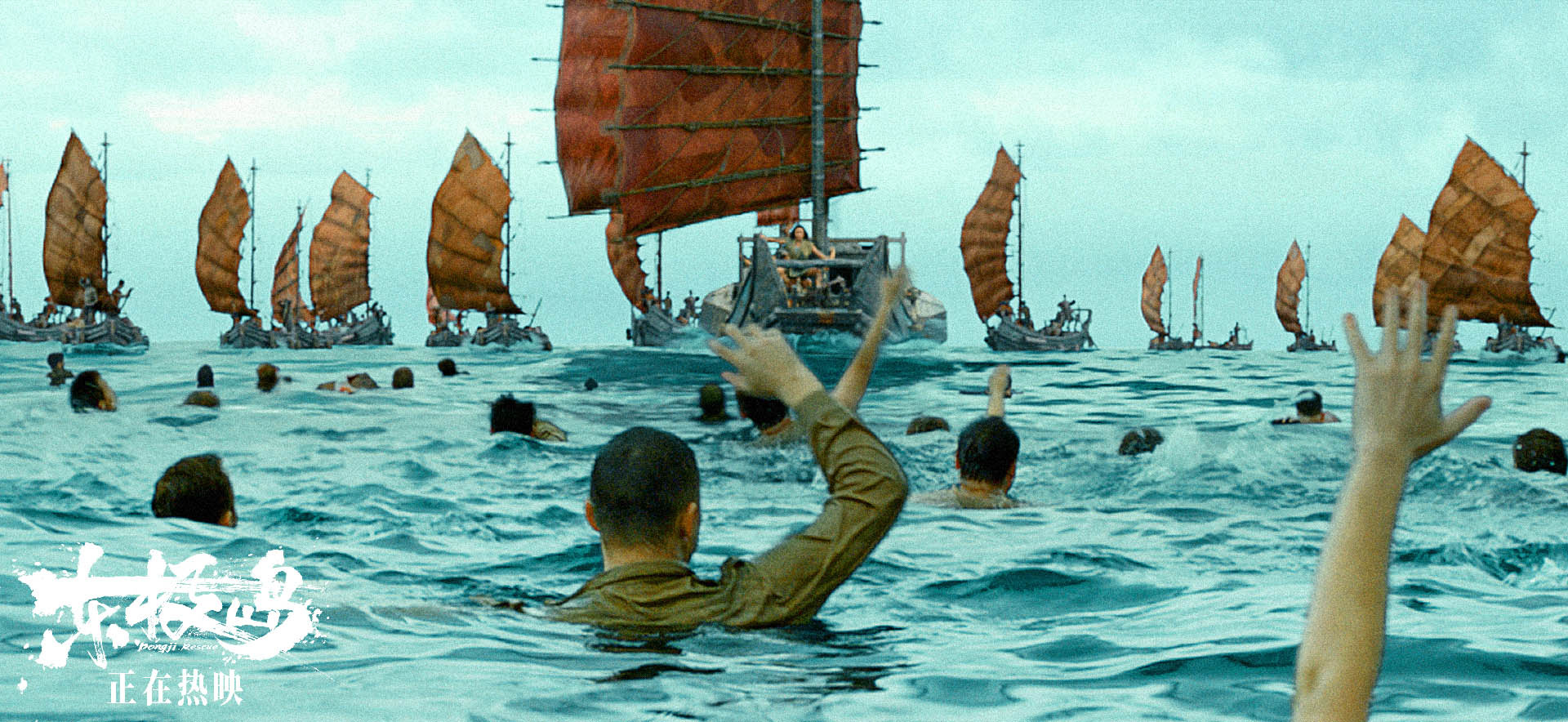 战俘们高喊着It’s the Chinese!(是中国人!),向渔船挥手求救,船帆与求生之手的遥遥相望,亦是人性本善的守望相助。手无寸铁的中国渔民,就是他们生的希望。这一幕不禁让人动容,渔民们的义举不仅将生的希望带给英军,也把热血和感动传递给了观众。