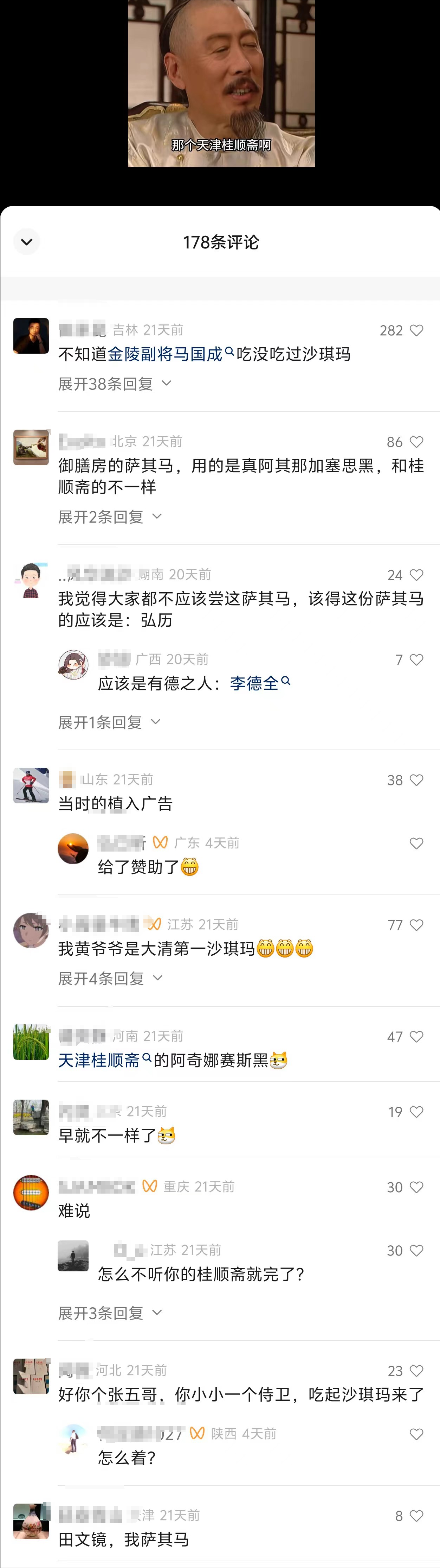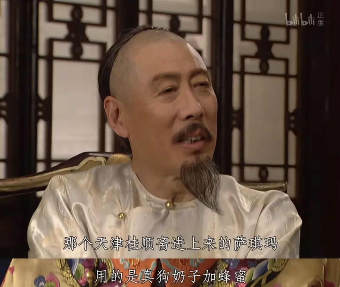剧里康熙顺滑地说了一段广告,天津桂顺斋进上来的萨琪玛用的是真狗奶子加蜂蜜,还让众人都来尝尝,不知道这个品牌的观众看到这里可能觉得不明所以,为啥康熙对投票选新太子毫无兴趣,反倒是岔开话题说吃的,其实就是为了植入广告。