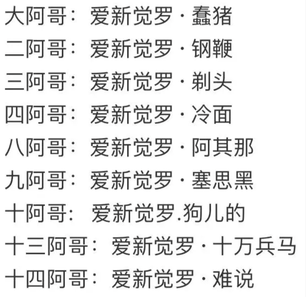 阿哥们的名字也被玩梗的网友根据他们的性格特点和为人处世取了外号↓