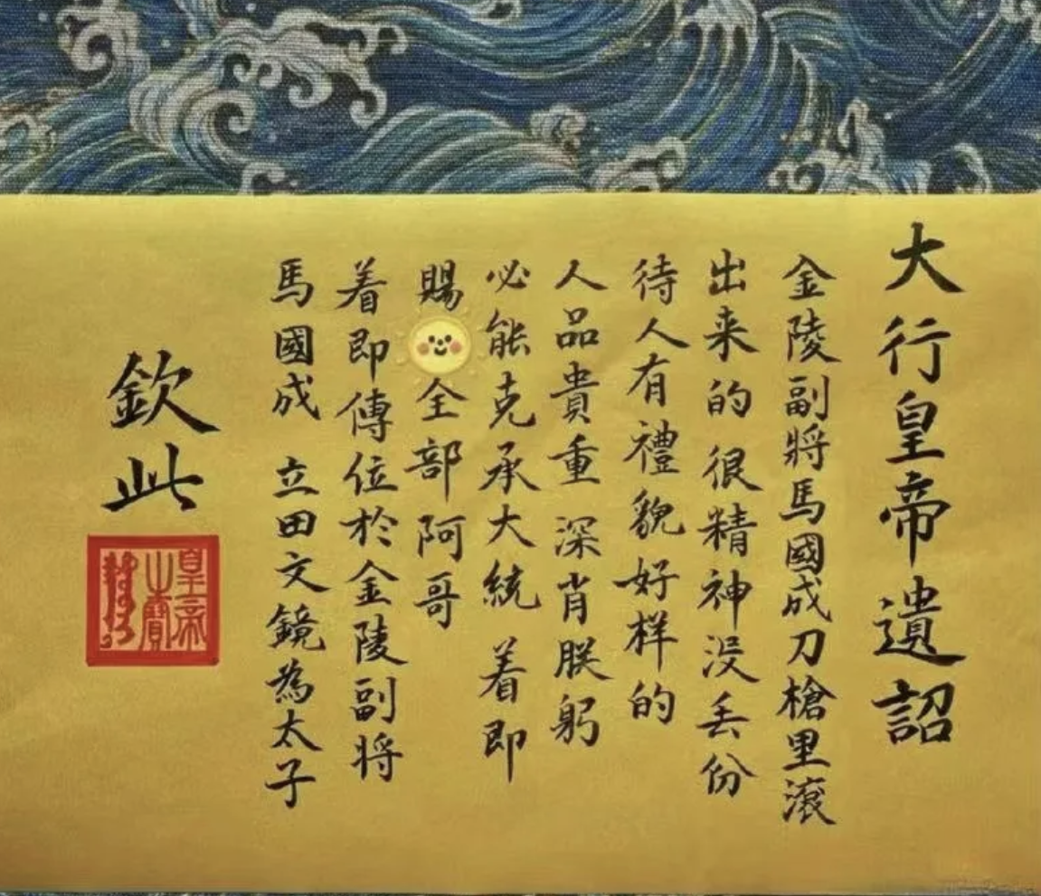 更野的是有up主二创康熙遗诏,改成马国成继承大统,田文镜之母为皇后,立田文镜为太子,封隆科多为含冤阁大学士。