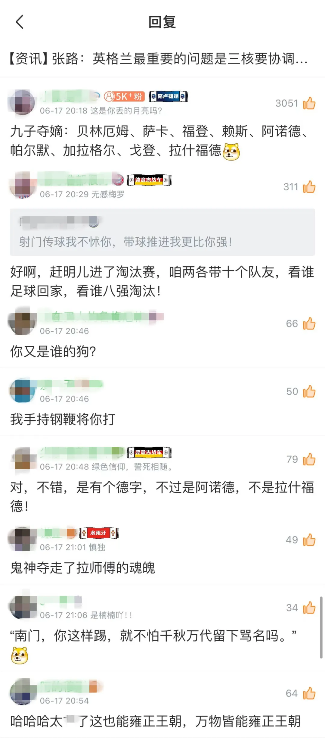 各种资讯和话题底下都能看到玩“雍正王朝体”的网友↓