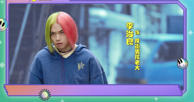 开心麻花演员李治良此次在片中饰演厚街男孩中的老大,发型同样极具特点,一半粉一半绿,可谓是当时非主流的代表。