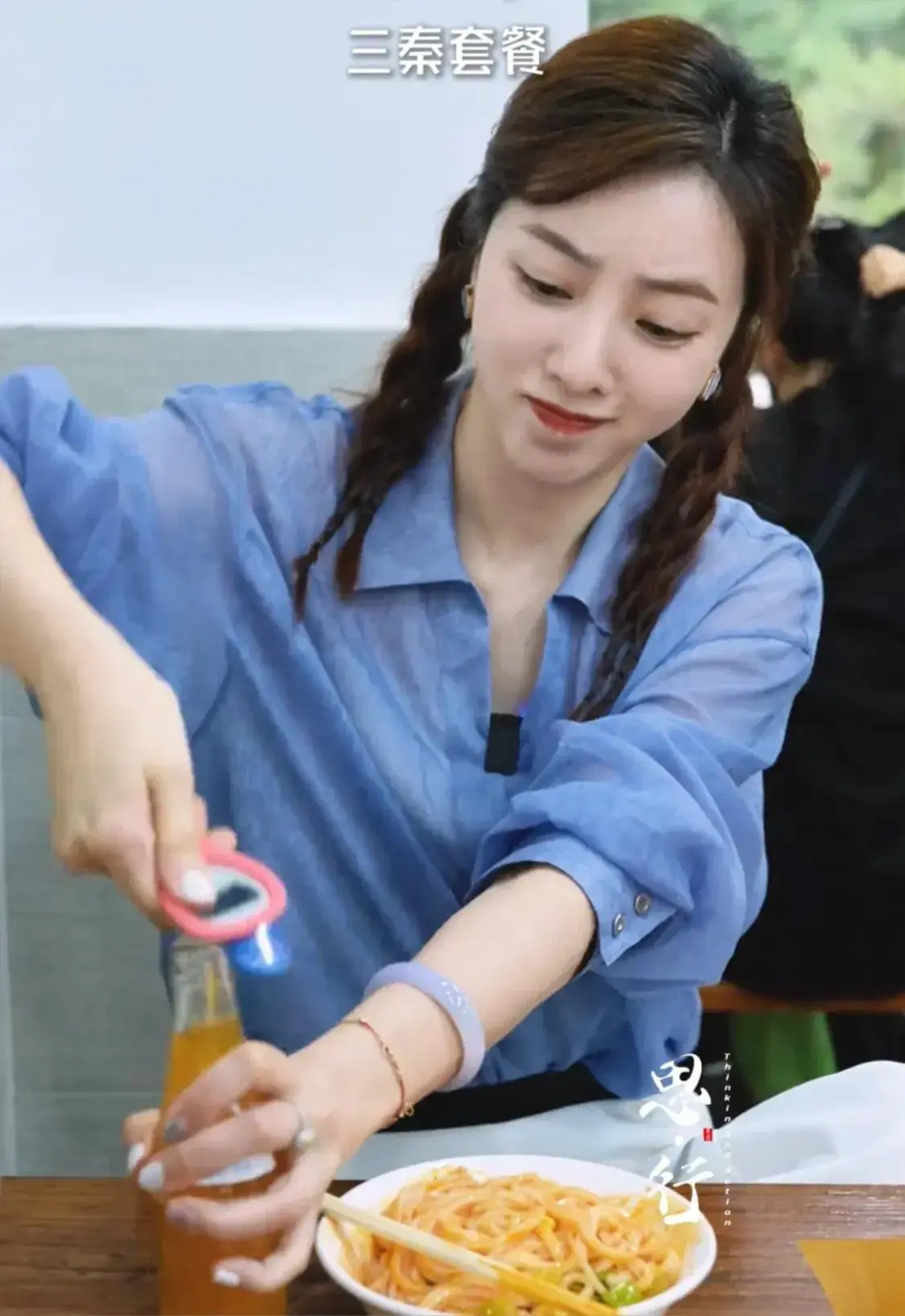 这一次,李思思打卡西安,她也晒出了自己吃面皮喝冰峰吃扯面的视频,特别是穿唐装的一组美照,引发了几万人点赞。