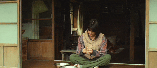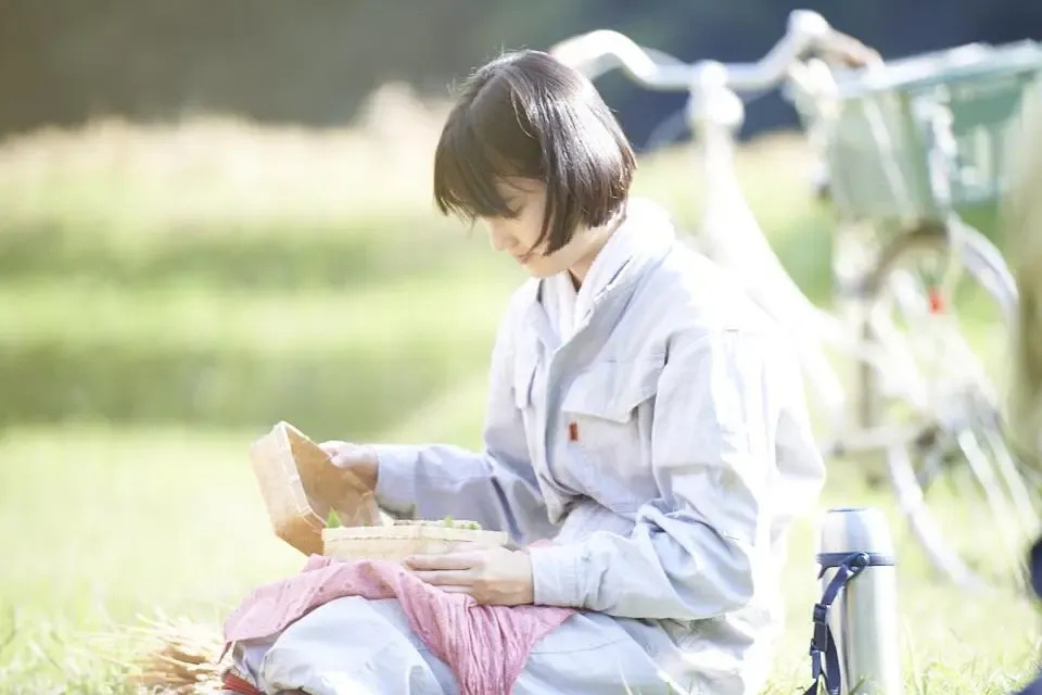 桥本爱在《小森林 夏秋篇》中的穿搭,完美诠释了舒适感这个词。宽松的棉麻衬衫搭配鸭舌帽、松垮的工装裤,夜晚天凉后加上的毛衣,每一件都是日常实穿的单品。