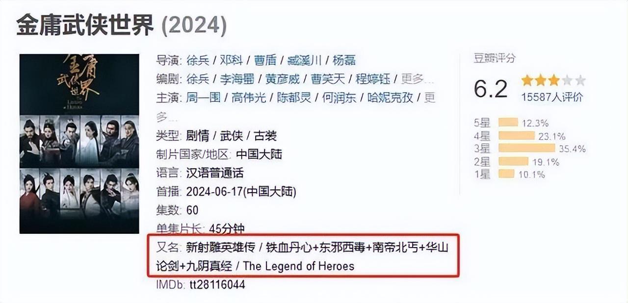 《金庸武侠世界》这部改编自金庸《射雕英雄传》的武侠剧自播出以后就一直不温不火,居然因为撤档的消息冲上了热搜,还是挺让人意外的。