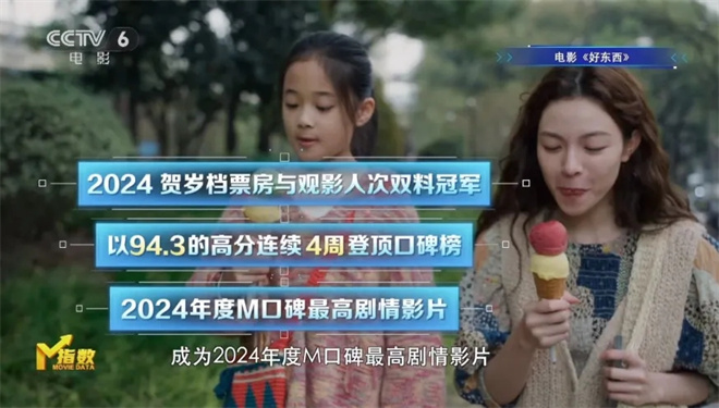 首先,从最佳故事片《好东西》的胜出可以看到现实主义的再次回潮。这部 2024 年贺岁档票房与观影人次双料冠军,以 94.3 的高分连续四周登顶口碑榜,成为2024年度M口碑最高剧情影片。