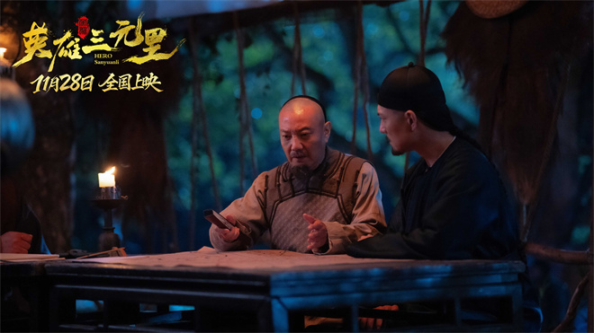 同步释出的同心向志版海报,以群像构图突出103乡百姓众志成城的抗敌决心。面对英军入侵,以举人何玉成(严屹宽饰)为核心的抗英志士们目光如炬,眼里的坚毅凝聚为不可抗拒的民族力量。英军在画面底部,于狭缝中行走,终究抵不过103乡百姓敢于血浴战场、严守家园的勇气!