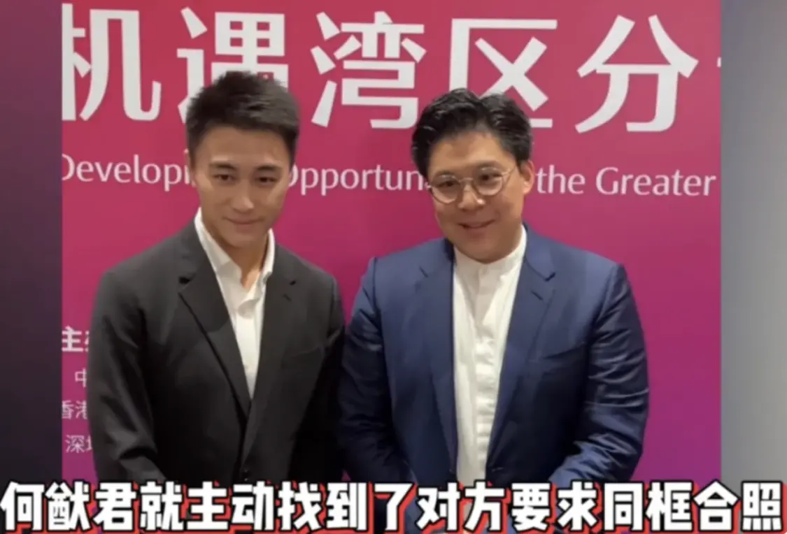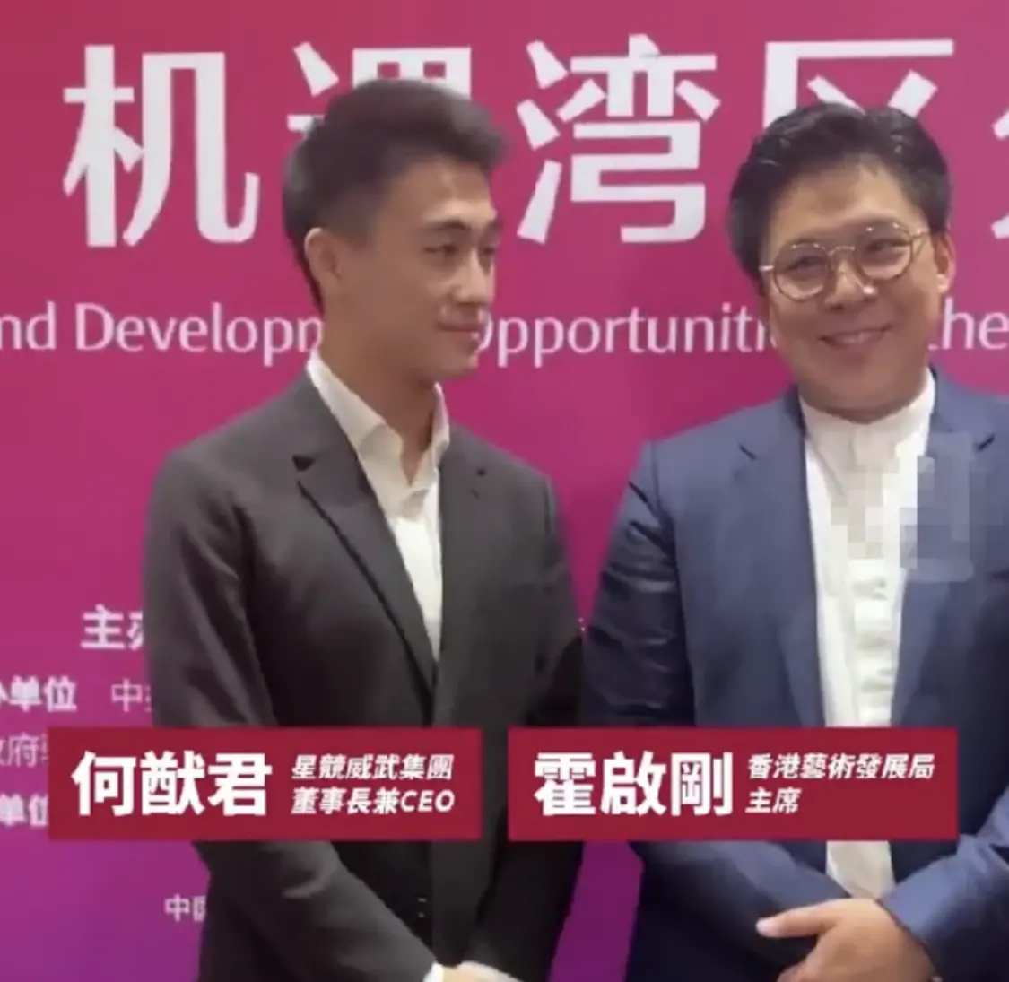 日前赌王何鸿燊之子何猷君和霍启刚一同在深圳参加2024年文化强国建设高峰论坛,当时何猷君还主动邀请霍启刚同框合照。