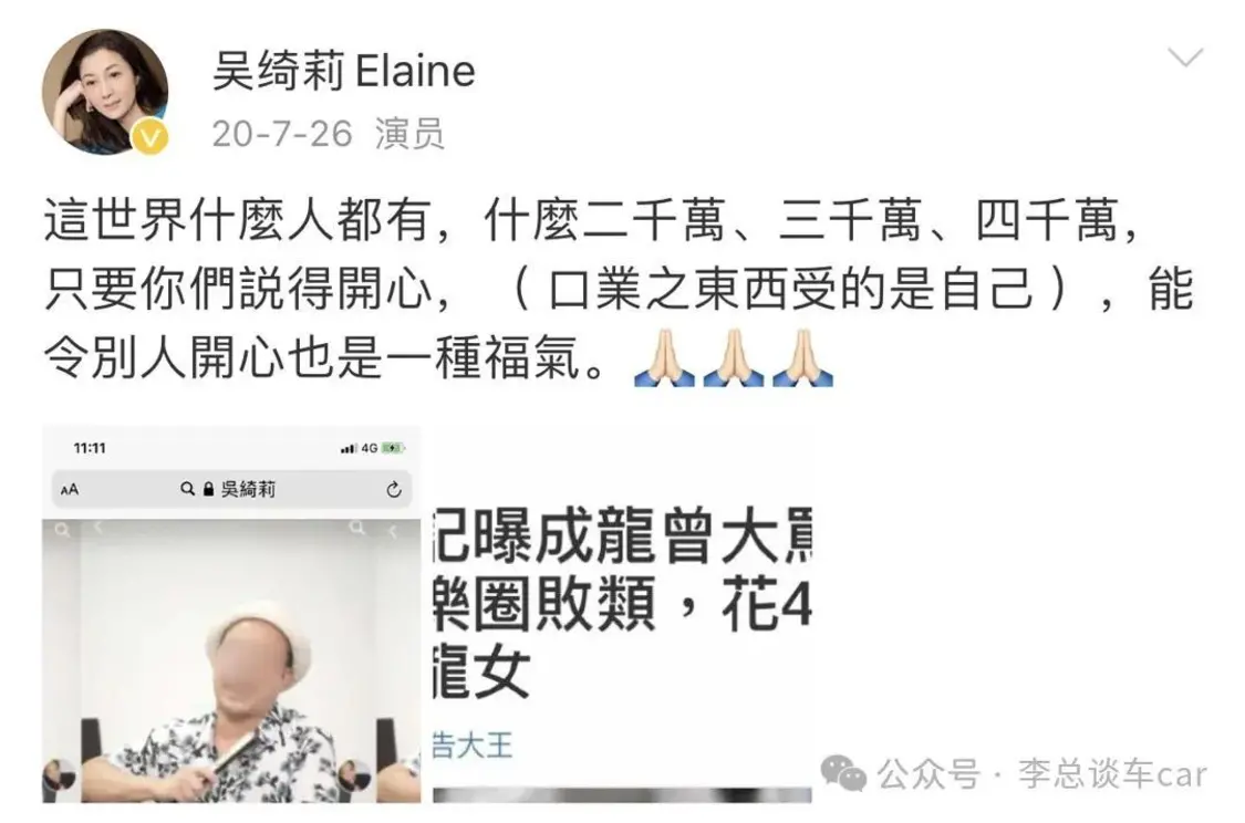 成龙的红颜知己,吴卓林的妈妈,吴绮莉开什么车?