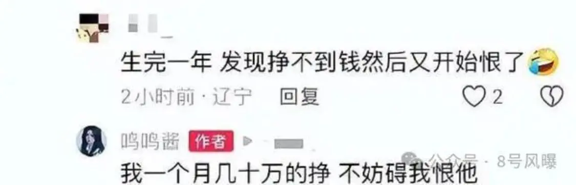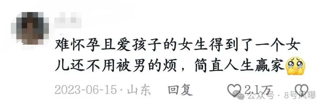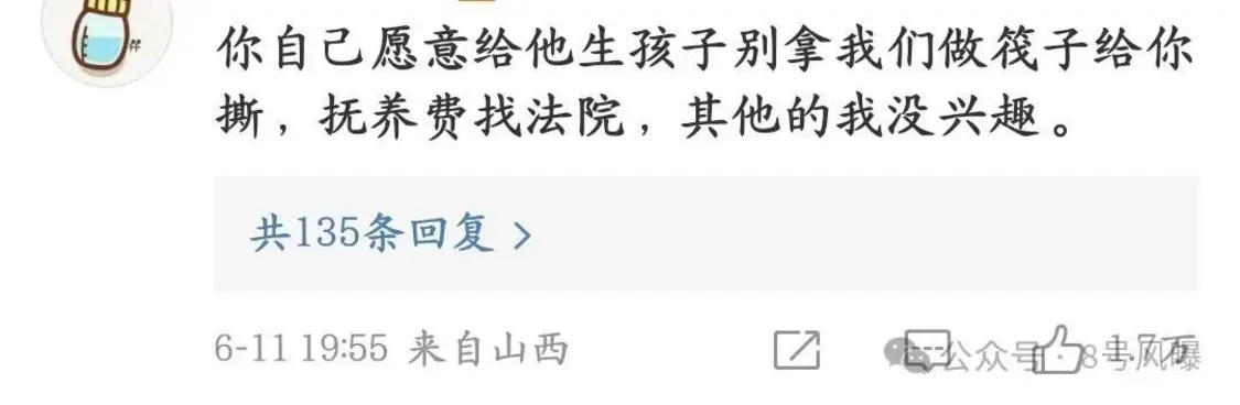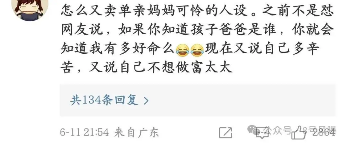 不过,之后有粉丝评论称不理解博主这个操作:“自愿生孩子的是你,窃喜命好的也是你,现在说男生不负责任的也是你。”