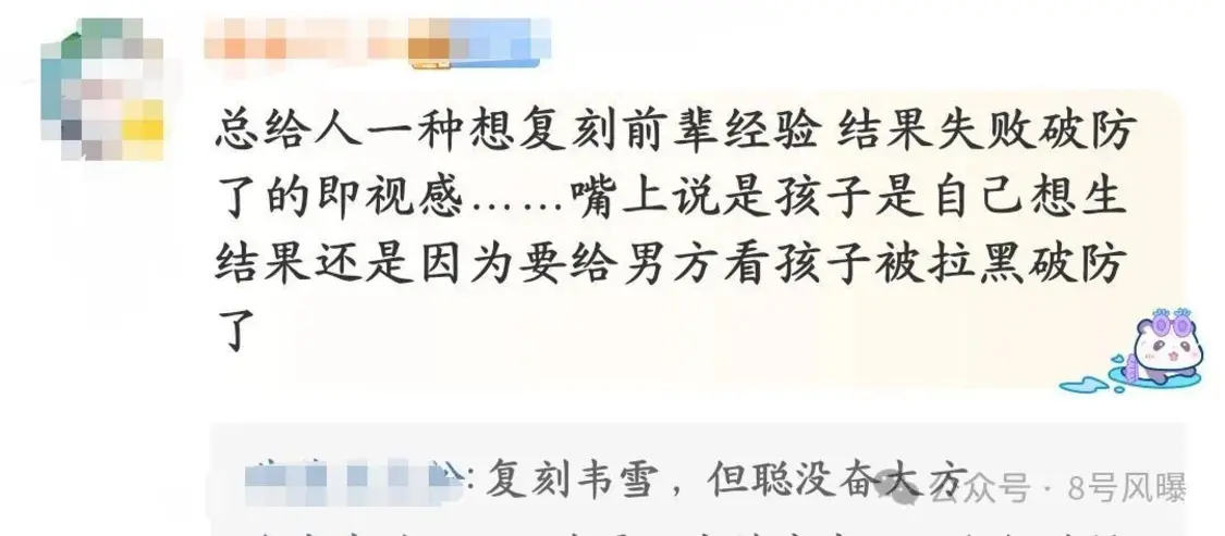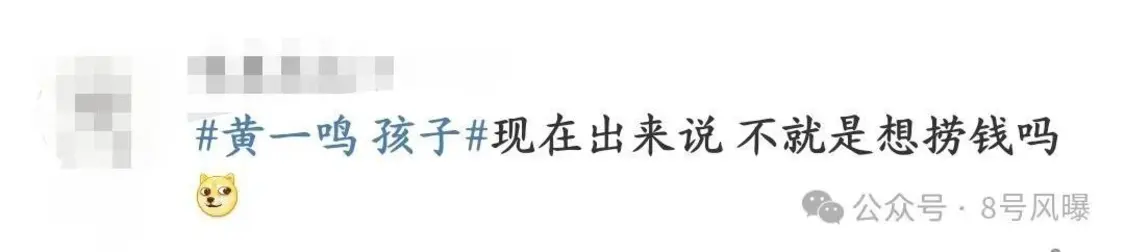 不过也有网友指出黄一鸣此时发声,想借孩子“上位”的心思太明显。但是她手段不高明,和韦雪没法比,最后靠孩子要到钱几乎不太可能。