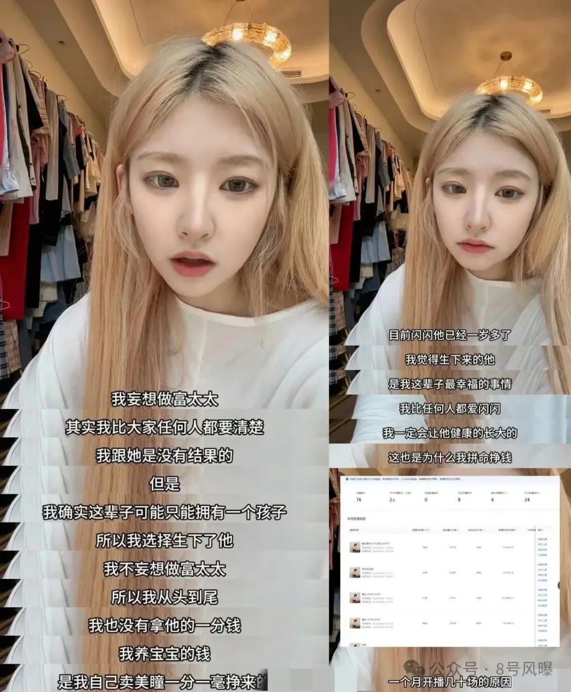 她说从头到尾都没有想要蹭王思聪的热度,也没有拿过王思聪一分钱,养孩子的钱都是她开直播卖美瞳辛苦赚来的。