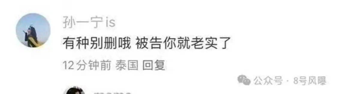 随后,孙一宁本人回复:有种别删,被告你就老实了。