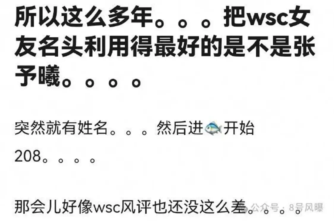 有网友表示王思聪这么多前任里面,张予曦算是把“王思聪女友”这个名头利用的最好的。