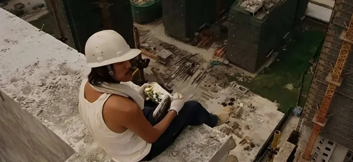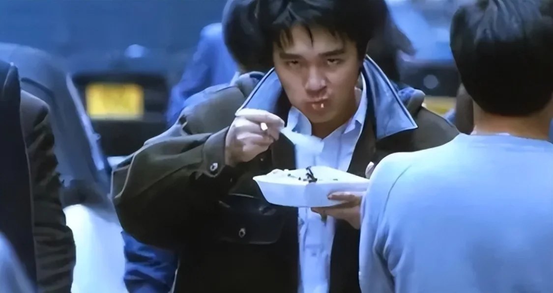 星爷就特别喜欢拍盒饭情节,《长江七号》中,就有他饰演的农民工在大楼楼顶狂炫盒饭的场景。