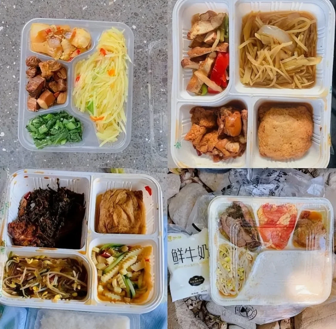 这些盒饭,其实并非张国强说的那般“美味”,因为盒饭基本都是大锅饭,也做不到营养均衡卖相好看。