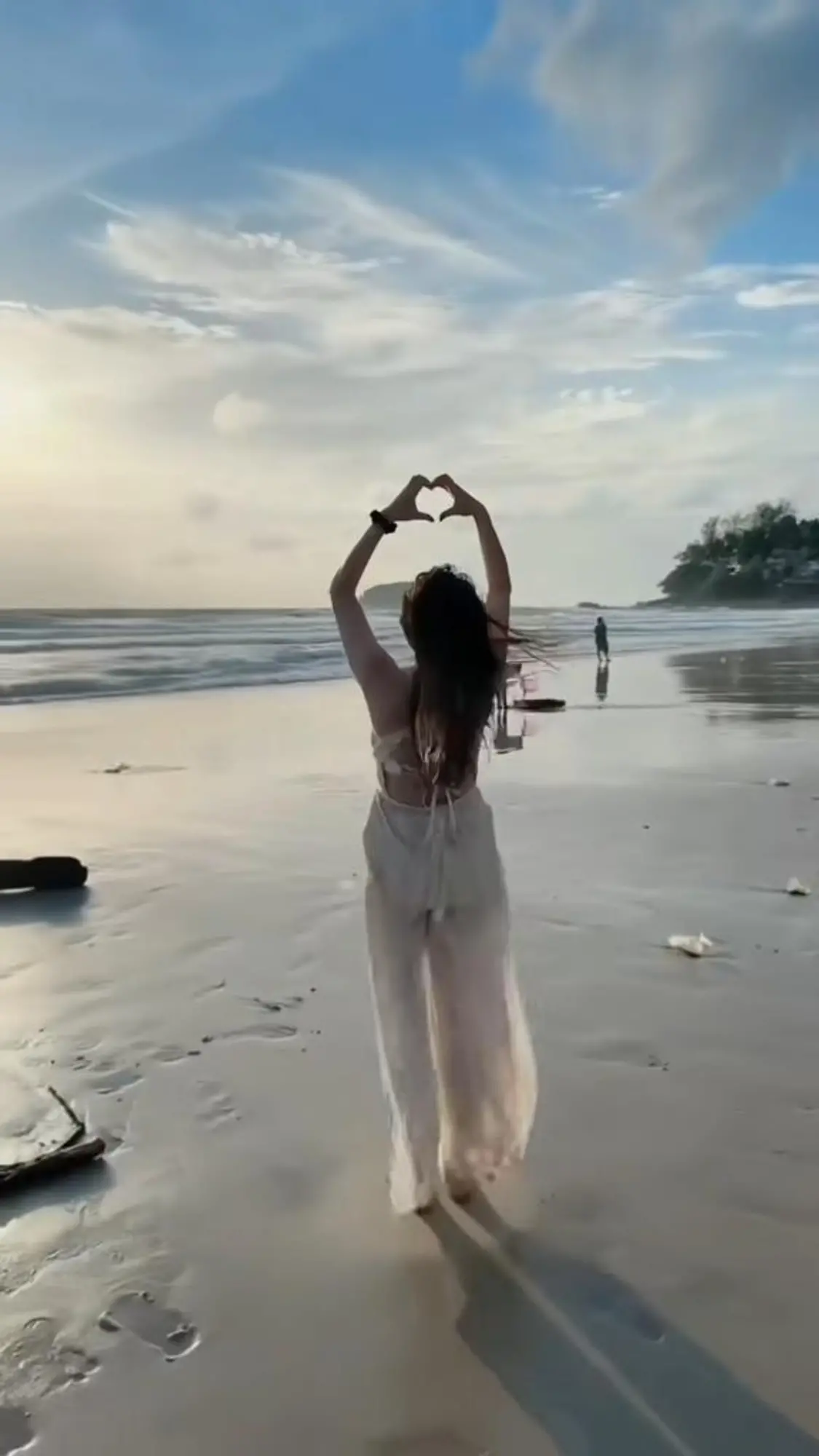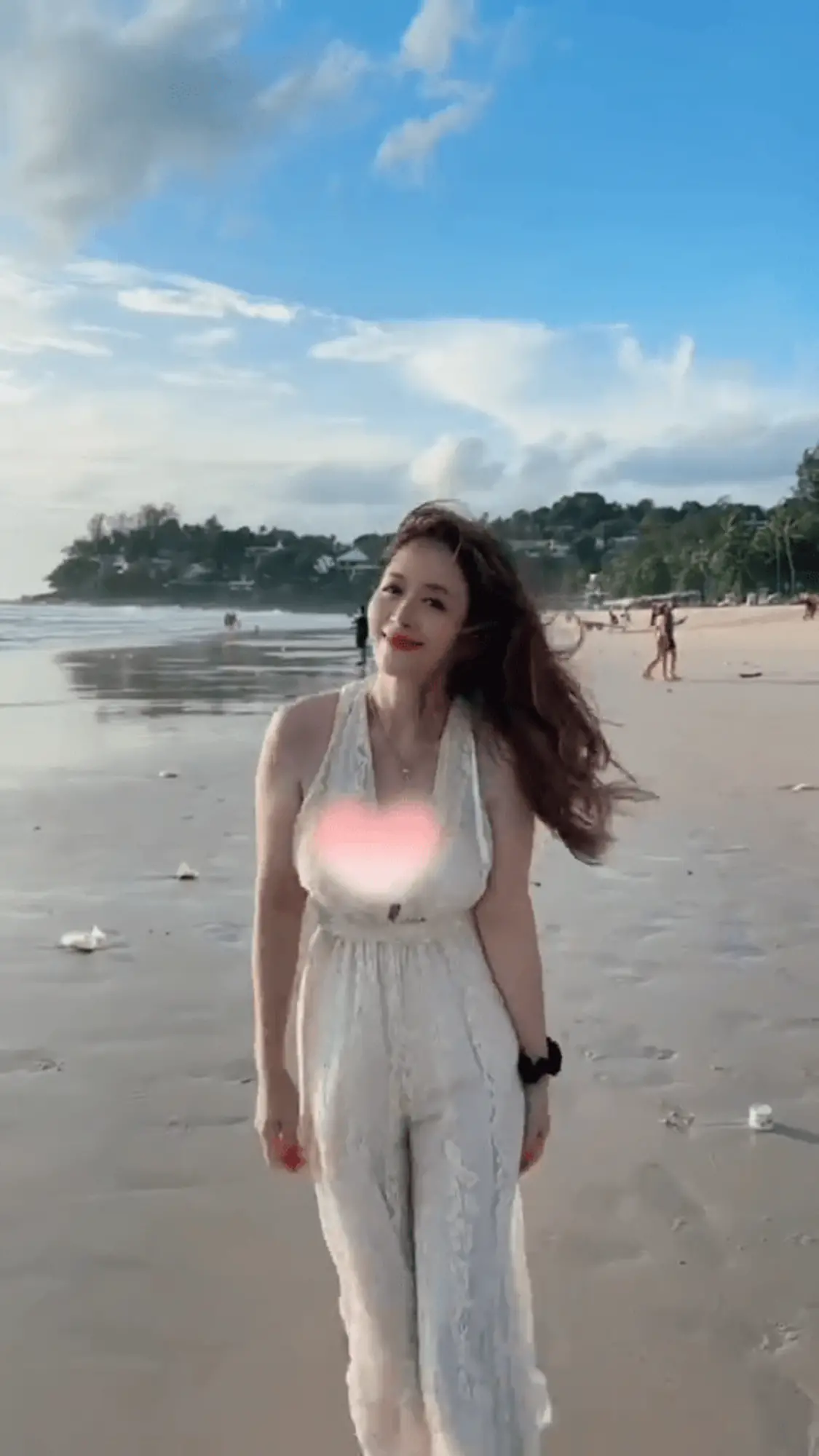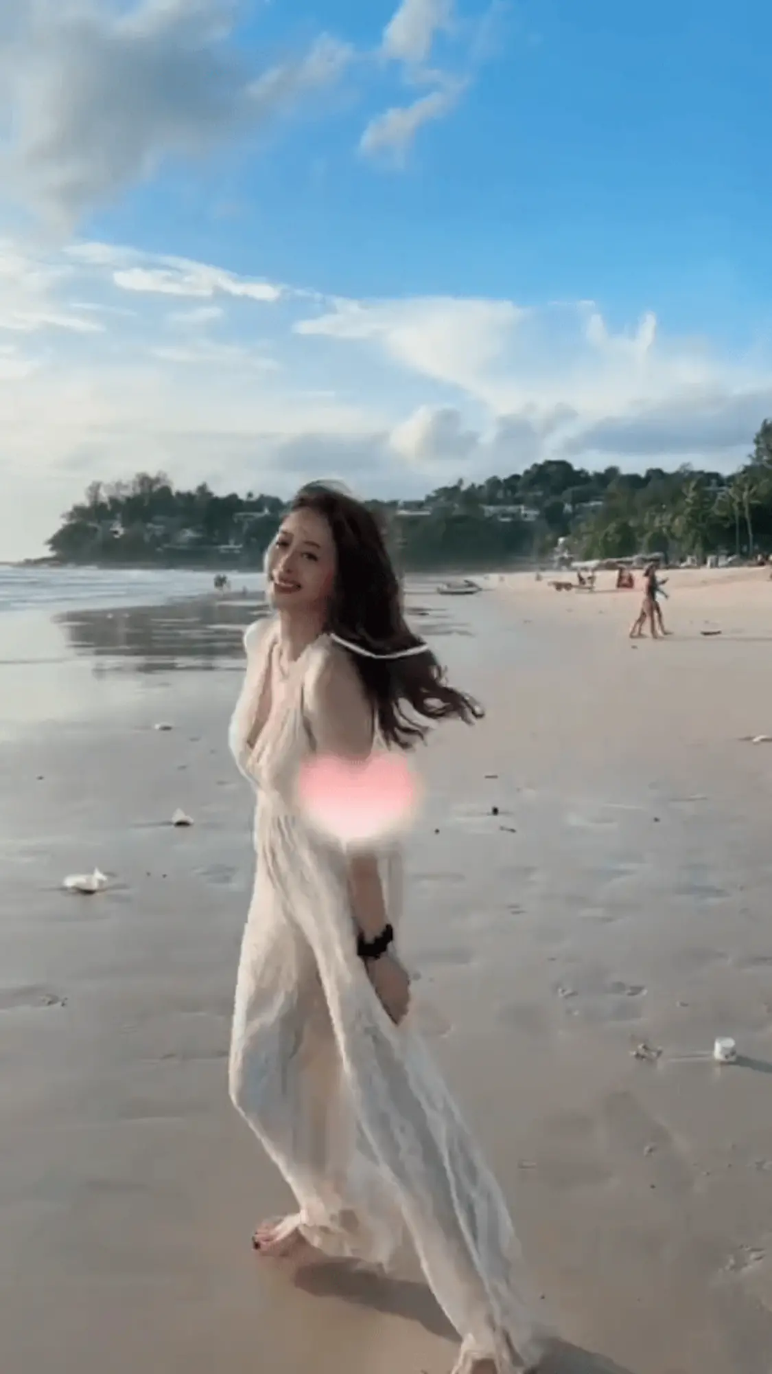 近日,姚乐怡晒出一条穿上白色透视裤,在海滩跑跑跳跳,少女味十足的视频,她穿的长裤随风飘起,加上心口位置的低V设计,以及背面绑带露出玉背,整体感觉非常性感。姚乐怡背向镜头摆出比心Pose,韩味甚浓。