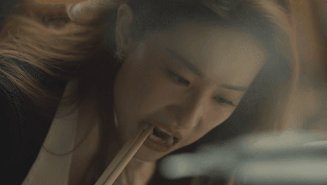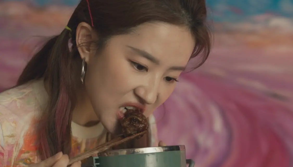 刘亦菲的吃戏一点都不含糊,别的演员吃戏躲镜头,刘亦菲筷子都要抡冒烟了,观众看她吃得都馋了。