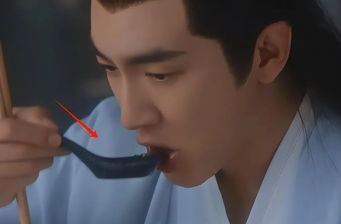 这场喝粥的戏也是一样,林更新拿起勺子在碗里搅和了几圈,可勺里啥都没有,林更新倒是嚼了半天。