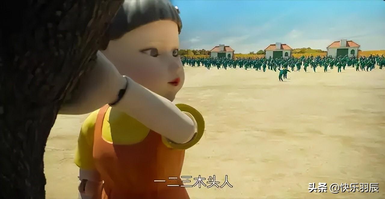 游戏规则:10分钟内跑到前面的一条线后就算赢。但广场前面有个木偶人,只要它不回头,大家就可以一起跑,但是回头后,所有人不能动,谁动旁边机枪就会射杀谁。刚开始大家以为只是个儿童游戏,但当第一个人被射杀后开始失控,为了急着冲过去,很多人被屠杀,场面极其残忍。第一关过后,只剩187人。
