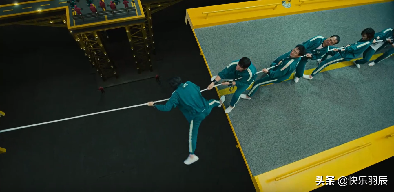 第五关的游戏,过玻璃桥第五关的游戏是过垫脚石桥,先开始大家选号,选号的目的是走桥的先后次序,玩家必须在10分钟内踩过安全的强化玻璃桥才能活命,然而桥上也遍布着易碎的普通玻璃,因此越后走的参赛者越容易活命,主角选了最后一个号,最后一个走。最后只剩3人活命,主角,主角兄弟,女贼晓。