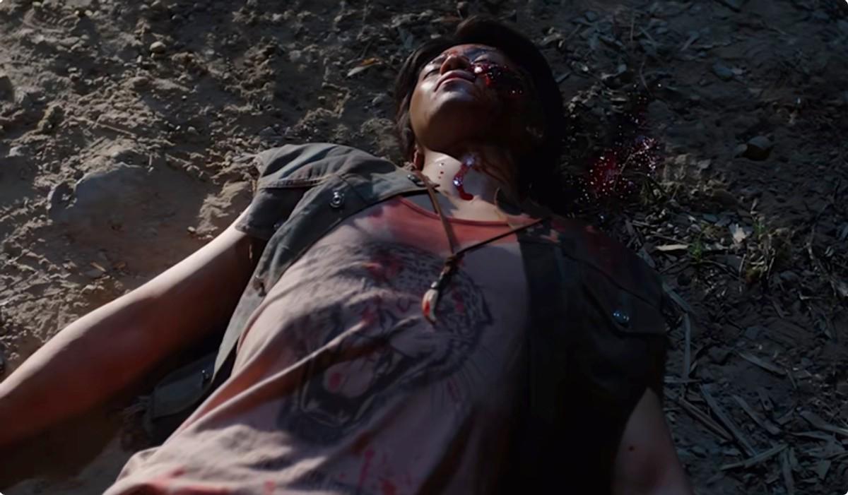 沈星误以为自己能通过关系找到舅舅,进入封锁区,结果被卖假酒的昂吞哄着装死,亲眼看到,前来查看情况的貌巴,中枪倒地。