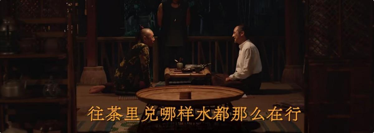 在这场戏里,吴镇宇饰演的猜叔在算账,但是没有夸张的暴力,拍桌子的震怒,只有不怒自威的气场。他笑盈盈地,却把喜怒不形于色的大佬风范展露无遗。