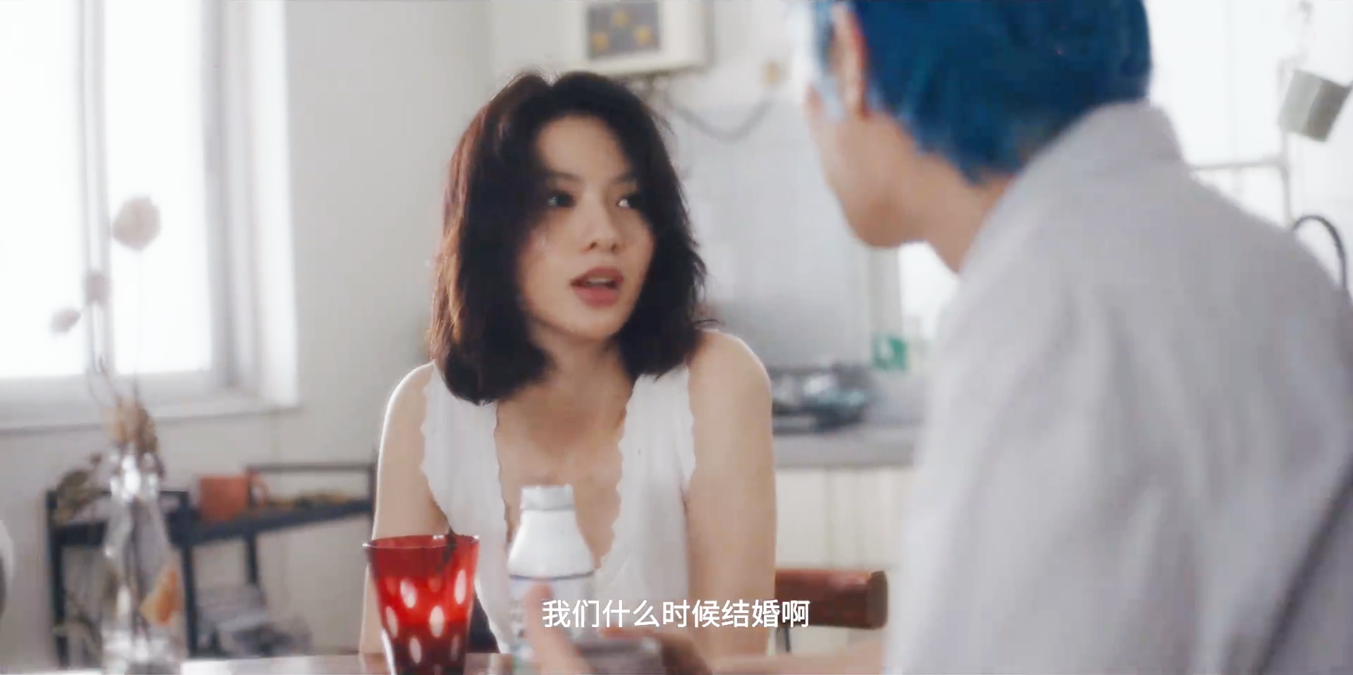 比如经常将镜头放在人脸和周围物品上,虚幻镜头的运用,还有大段大段的旁白与对白,这些都是在模仿王家卫的电影。