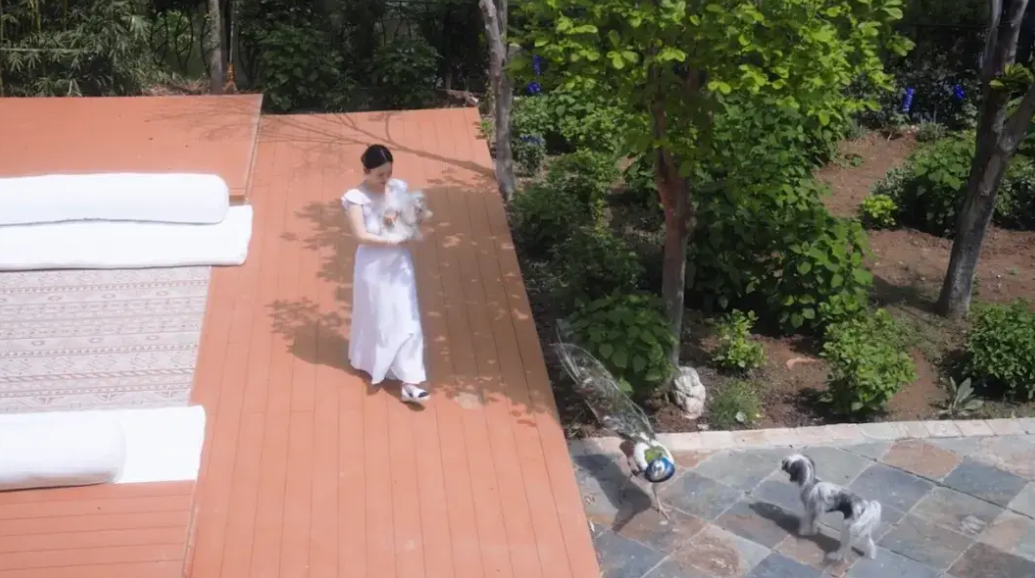 如今,在自己的豪宅里,养花种草、遛狗观孔雀,实属美好。