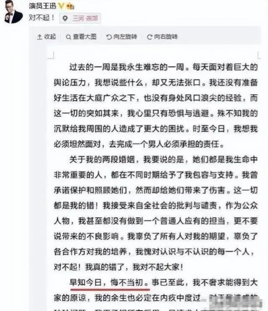 王迅不仅没有表现出丝毫的愧疚,反而理直气壮地对外声称,离婚是他人生的一次“涅槃”,是命运的安排。