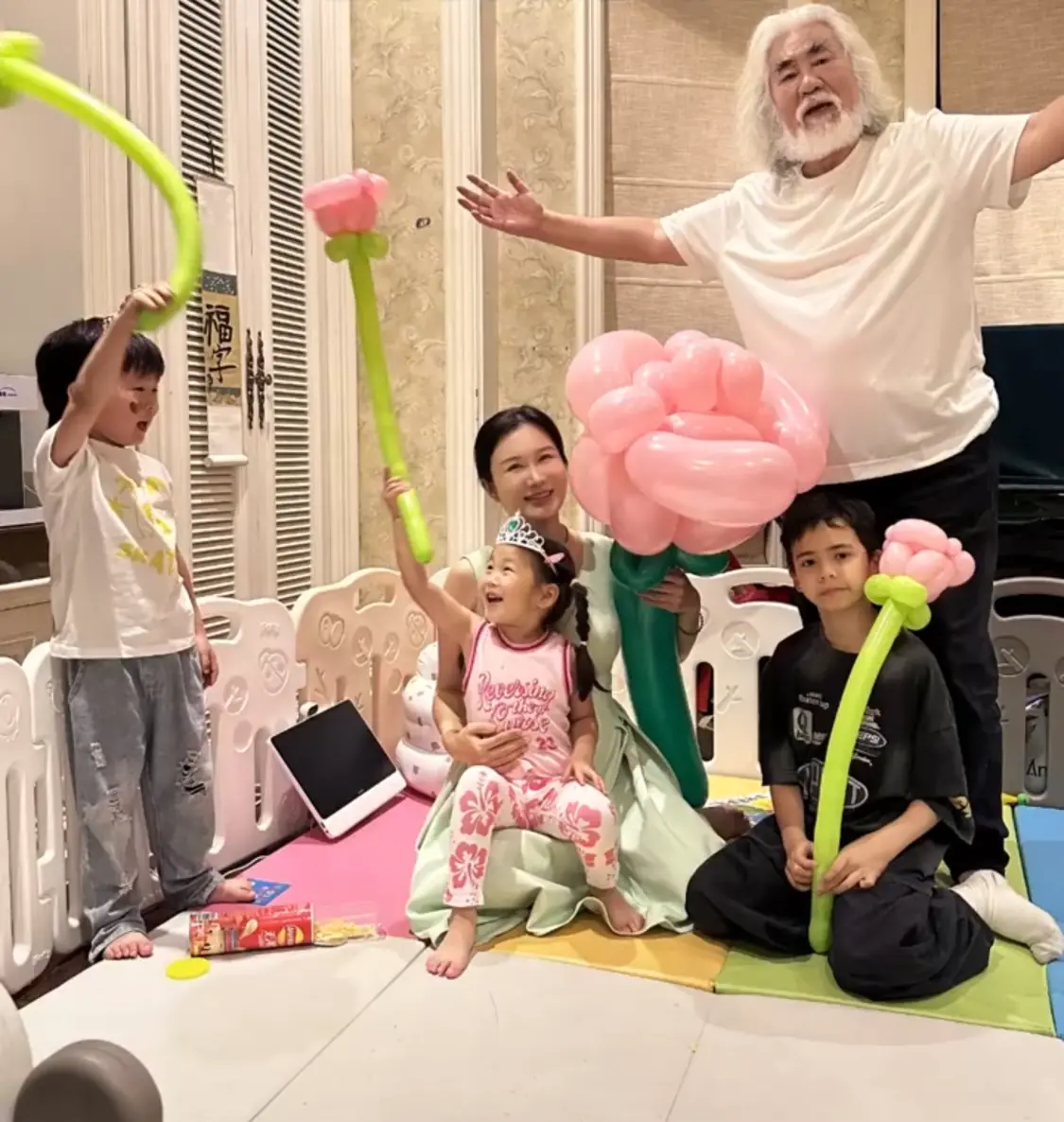 在刚刚过去的六一儿童节里,张纪中给三个孩子准备了气球花,最后还不忘给老婆带上一捧超大花束,比孩子们手里的更大更漂亮,这无疑是许多女性所向往的,那种被深爱的人捧在手心,呵护备至的感觉,既温暖又动人。