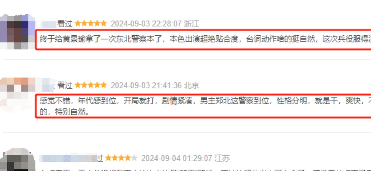 “黄景瑜终于饰演东北警察了,完全贴合角色,这次的表现真是太棒了。”