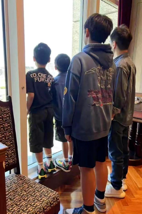 社交平台晒出的几乎都是背影和侧脸照片,即使是像家庭照这样有正脸的大合照,也会特意遮住儿子的脸。