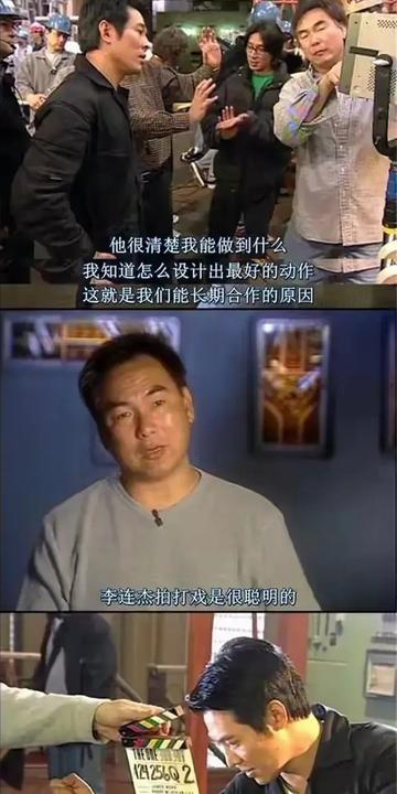 “拍的时候李连杰站在上面好一点,反派嘛,有型,是那个梅尔吉普森也有一个动作导演的,他们一看,怎么把我们老板弄这样子,这么LOW,上面把枪弄掉,又把枪卸掉,这很没有面!”