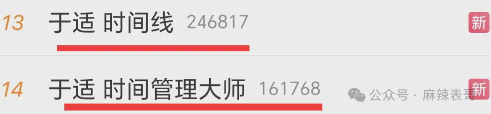 基本每隔一段时间去刷,都有新的热搜词上来,主要围绕一个人:于适。