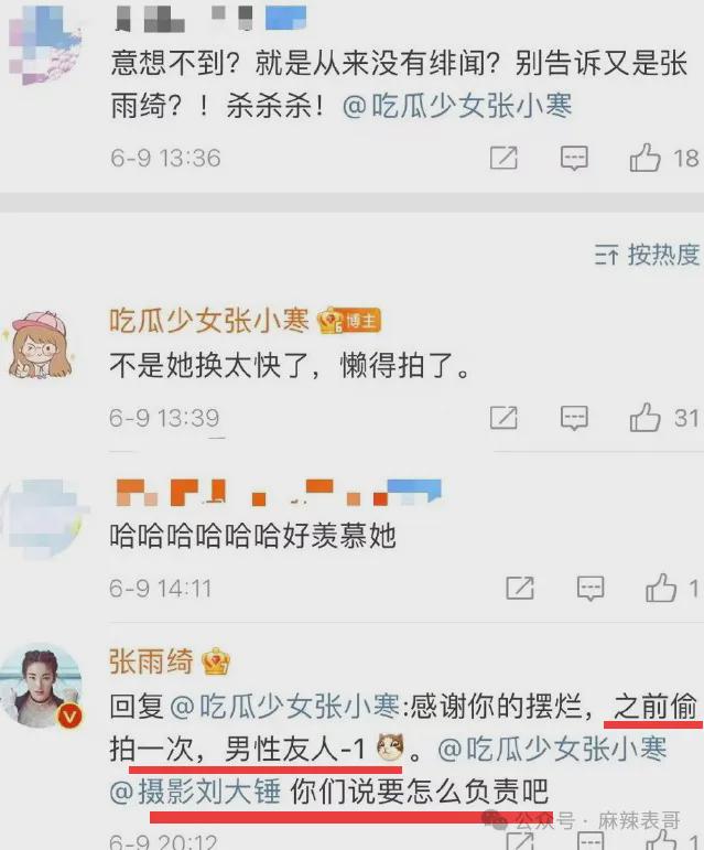 毕竟张雨绮和袁巴元的瓜已是陈年老瓜,知道的人都知道,现在她主动爆于适,大家都催张雨绮放锤。