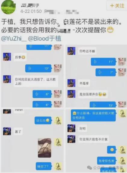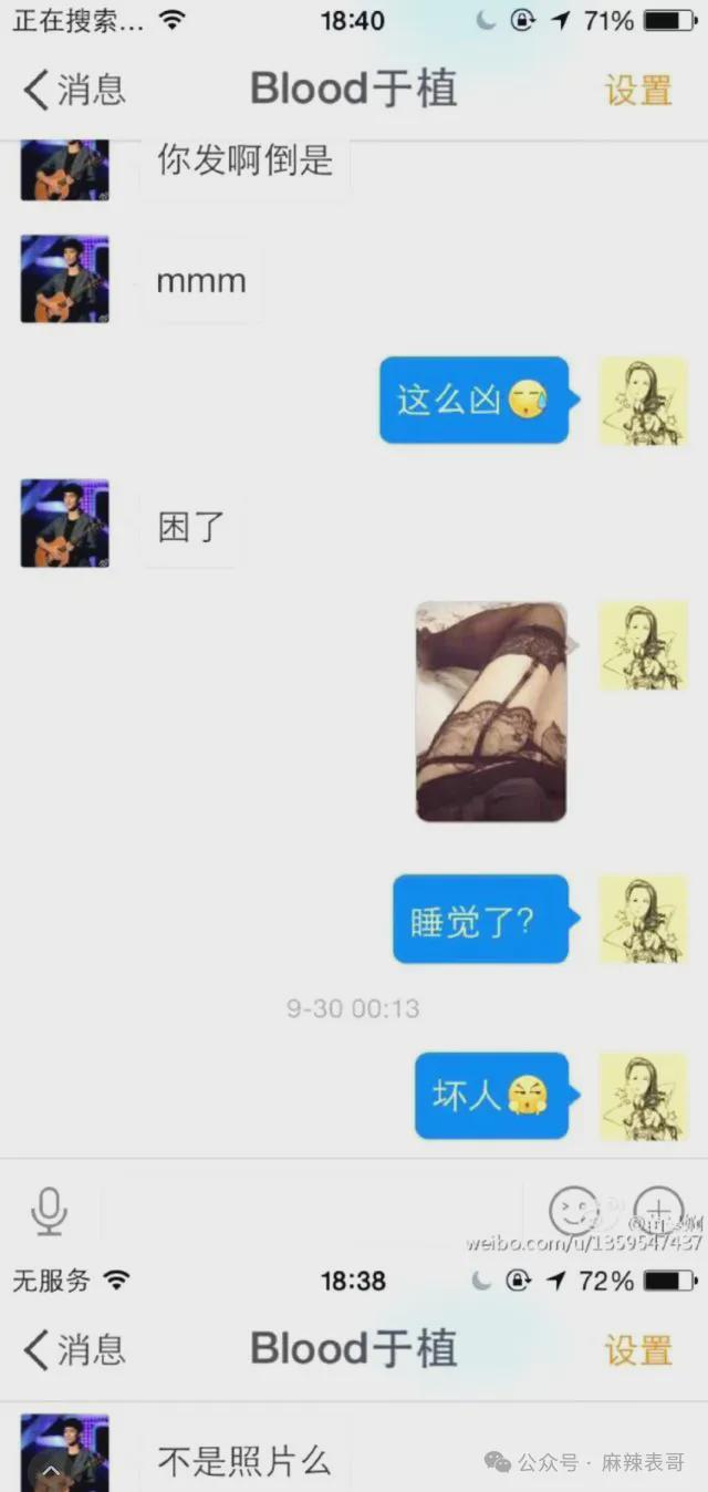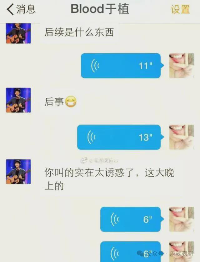 一位女网友发出了和于植的聊天记录,尺度很大。