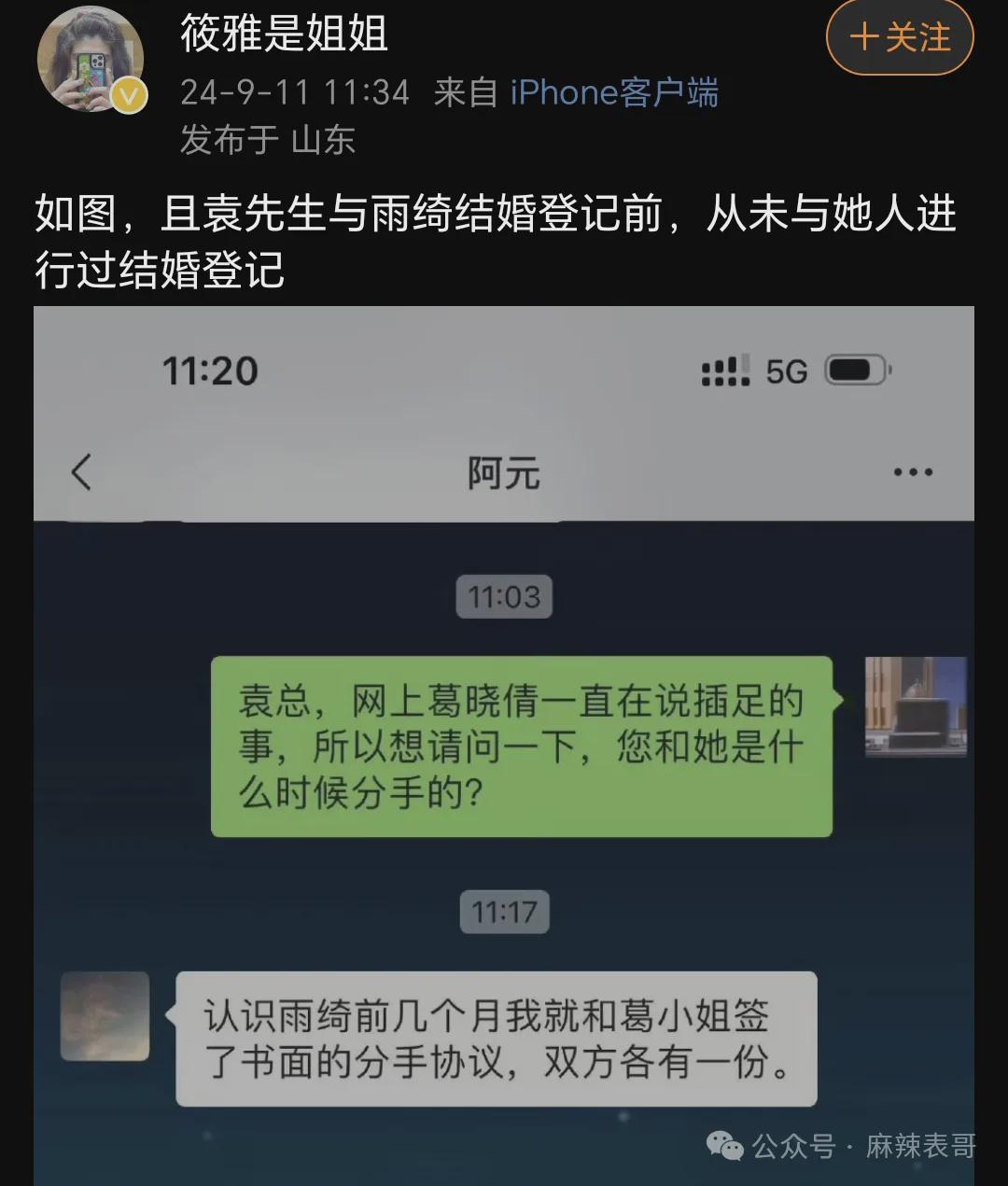 果然,到这次张雨绮上热搜后,前夫袁巴元的前任葛晓倩就出来了。