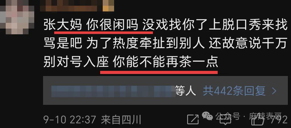 于适粉丝则破大防,说张雨绮是大妈,很茶。
