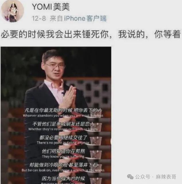 女网友说必要的时候会锤死你,后来被猜测她和于适有关联。
