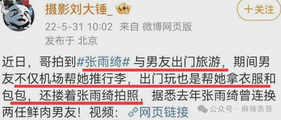 2022年,刘大锤拍到张雨绮和于适一起出门四天,那会于适没走红。