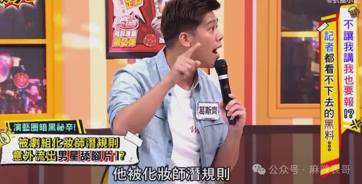 之前葛思齐在节目上说,内地有个男演员被一位化妆师潜规则。