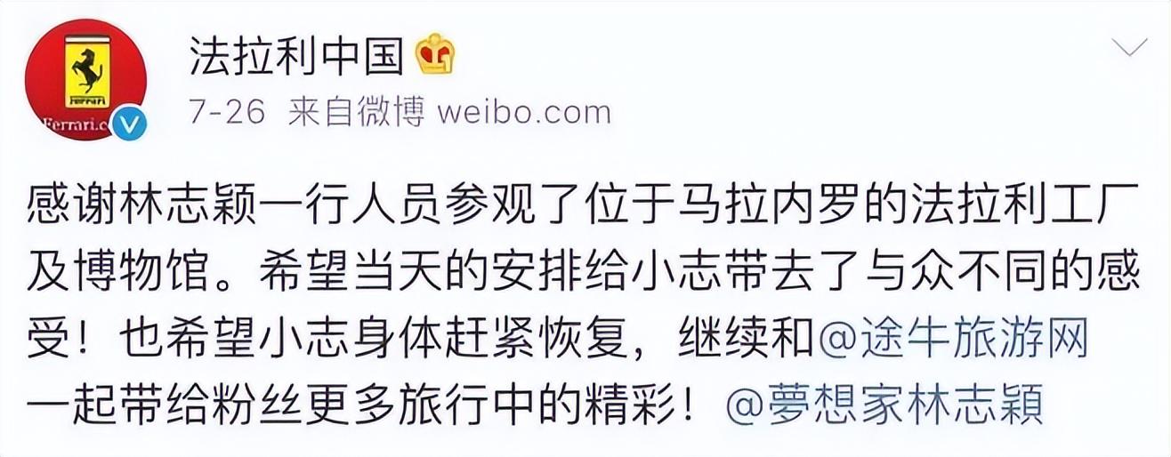 虽然后来法拉利和车神有出来辟谣这些都是真的,但自认理亏的林志颖,经历了这次事件,减少了在社交媒体上的曝光,开始怀念起了曾经那些除了拍戏,就是赛车以及照顾家庭的日子。