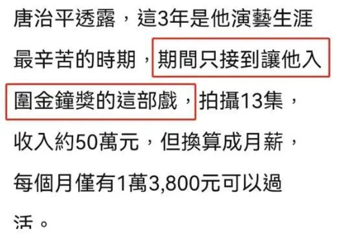 之后他获得了新机会,曾凭借出演的电视剧入围金钟奖最佳男演员。虽然没得奖,但起码口碑有了。