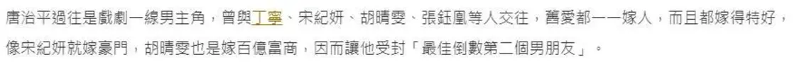 而这些年,唐志平虽然也有一些绯闻,但都没能长久: