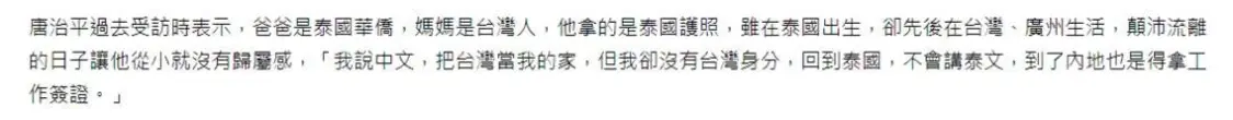 唐志平出生在泰国,爸爸是泰国华侨,身为富二代的他从小在台湾和广州生活过。